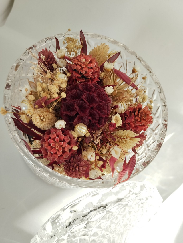 Toutes les création sont réaliser à la main par mes soins dans mon atelier. Les photos sont non contractuelle et chaque arrangement est unique. Les fleurs proviennent de production européenne.
